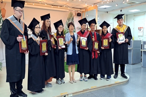 學務長林淑芸表示,學習楷模同學雖有身體的不便,卻都能努力不懈high pass完成學業,令人敬佩,即將離開學校,展開另一段旅程,相信各位的韌性,將來的職業發展,一切順利沒有問題,祝福大家。