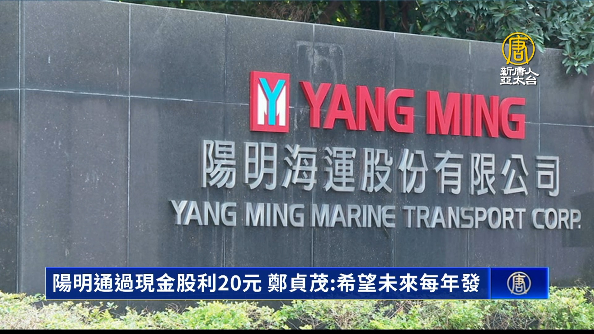 【新唐人亞太台 2023 年 05 月 26 日訊】國內貨櫃航商陽明海運,成為業界景氣指標之一,26日舉行股東常會,不過去年市場先盛後衰,預估今年貨櫃航運市場供需失衡擴大,股東會上另一大焦點就是股力政策,董事長鄭貞茂喊話,只要未來有賺錢都希望每年發放。