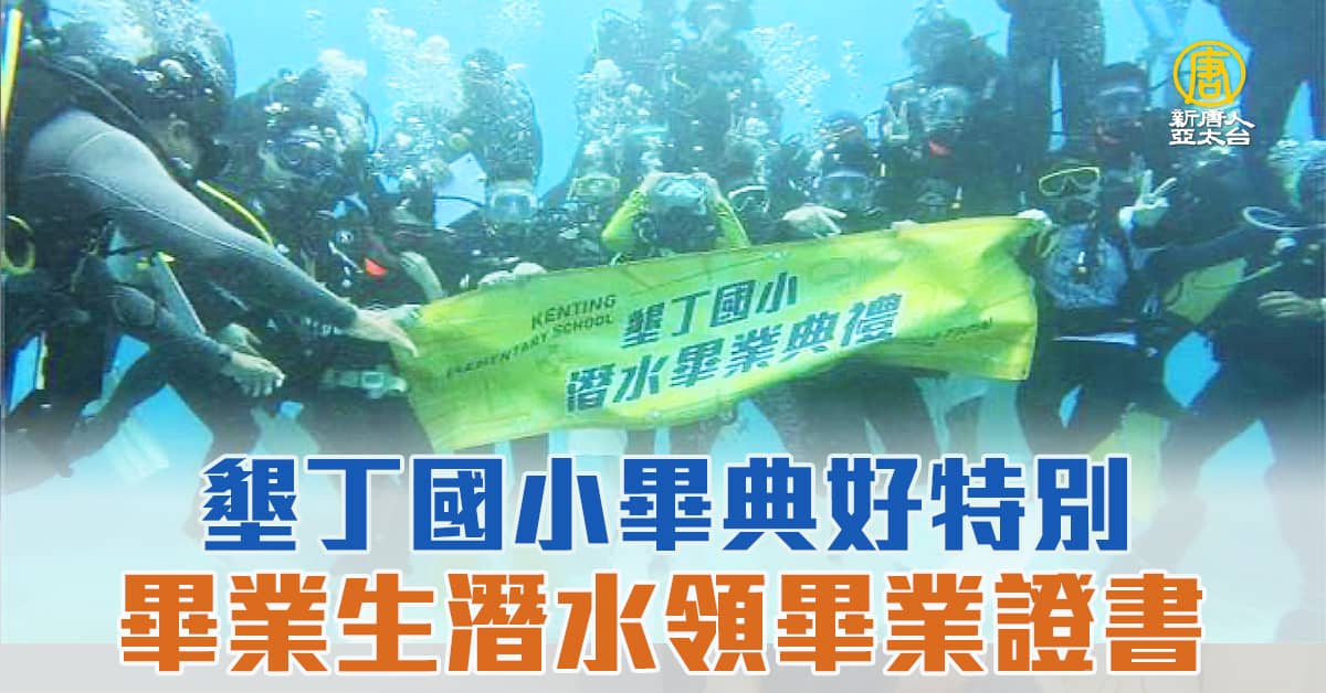 【新唐人亞太台 2023 年 05 月 26 日訊】台灣南端的屏東縣墾丁是潛水勝地,墾丁國小把畢業典禮會場搬到大海,畢業生潛入海中領取畢業證書,典禮佳賓就包括各種海洋生物,成就一場別開生面的海底潛水畢業典禮。