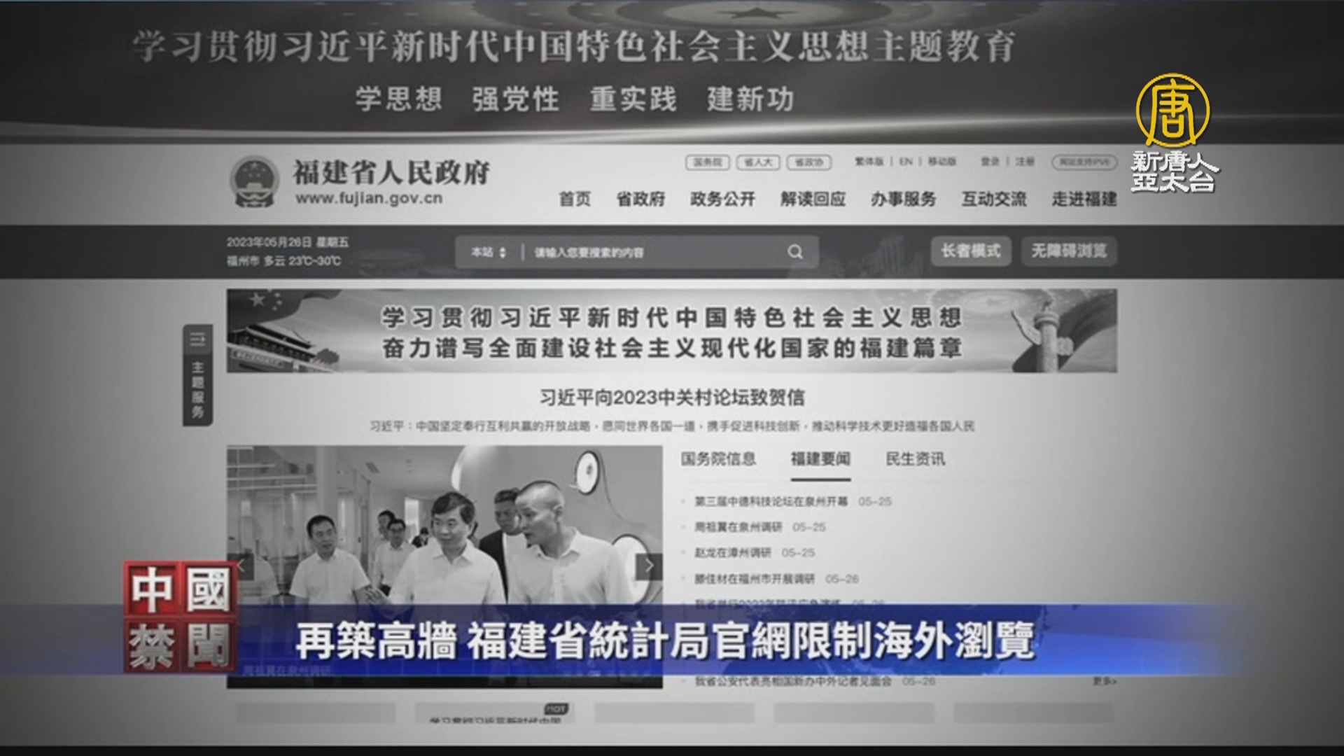 【新唐人亞太台 2023 年 05 月 27 日訊】中國經濟成長動能疲弱,青年失業率創新高之際,中國福建省官方禁止境外訪問福建官網。有學者認為,中共限制海外取得國內資料管道的態勢很明顯。中共卻回應稱,網站近期受到嚴重網路攻擊,故採取「緊急措施」因應。