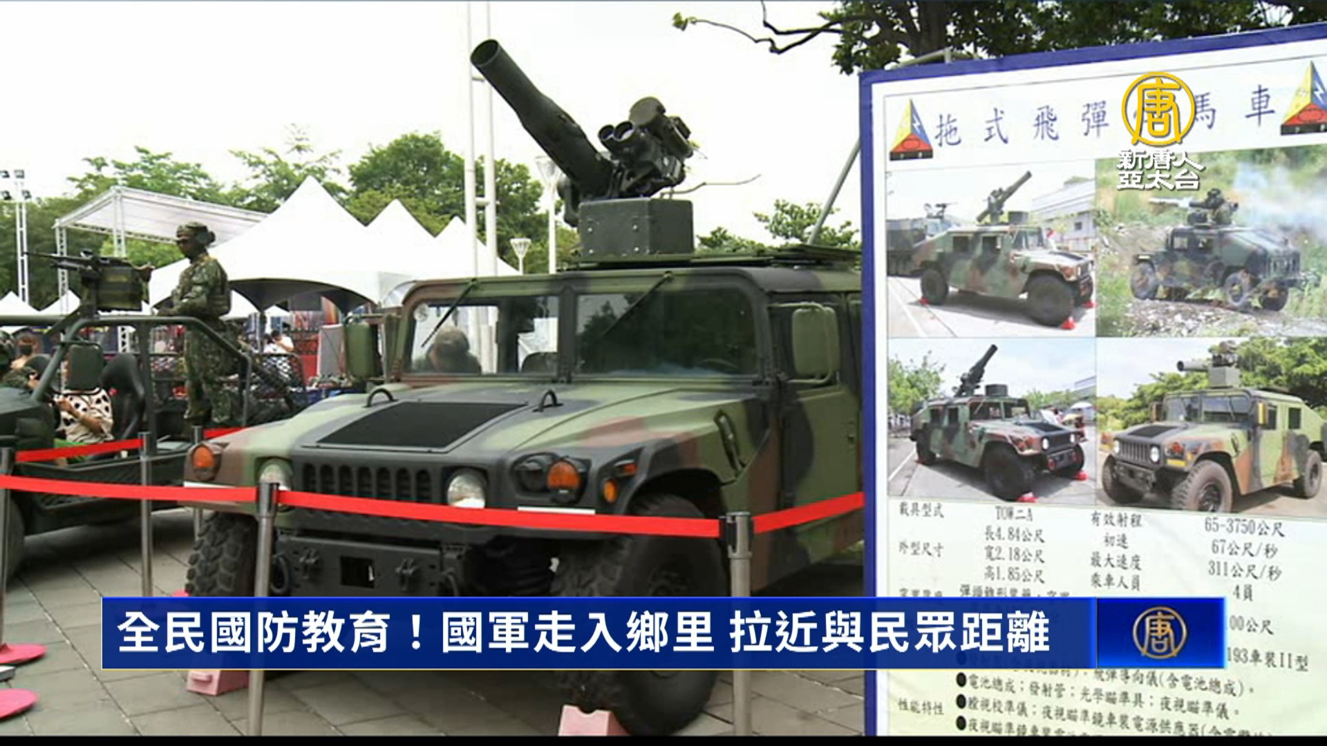 國軍為了推廣全民國防教育,走入鄉里舉辦各種教育活動,希望藉由武器展示以及戰術操演,拉近與民眾距離,凝聚全民的向心力。