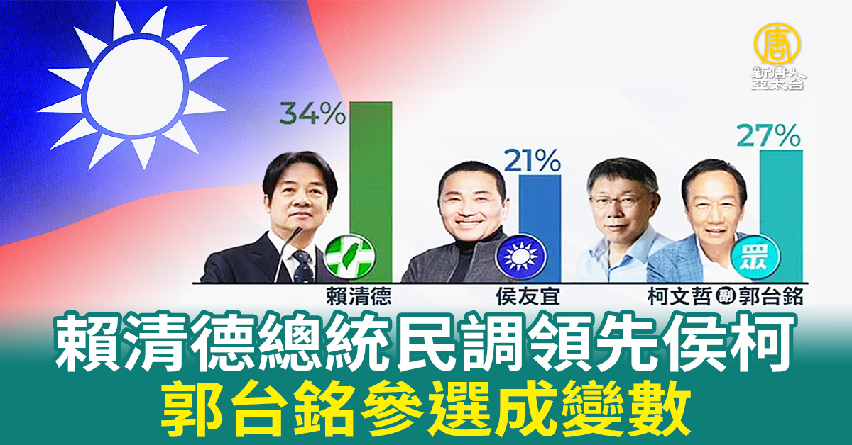 賴清德總統民調領先侯柯 郭台銘參選成變數