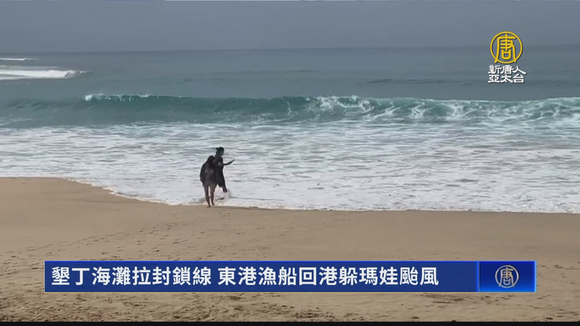 【新唐人亞太台 2023 年 05 月 30 日訊】「瑪娃」颱風逐漸接近台灣,南台灣的屏東已經出現風浪,戲水勝地南灣一早就拉起封鎖線,水上活動業者也趕緊將生財工具固定穩妥。東港漁船通通回港躲避颱風,至於往來屏東跟小琉球的交通船,這兩天都還是正常營運。