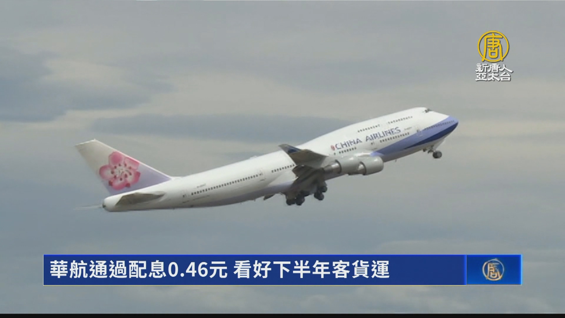 【新唐人亞太台 2023 年 05 月 31 日訊】華航今天舉行股東會,通過每股配息0.46元,董事長謝世謙表示,從2022年11月國境解封後,營運比重從貨運轉為以客運為主,上半年客運表現亮麗,航班回復約7成,而今年1至4月客運收入已達疫情前的9成,隨著暑假即將到來,看好下半年營運。