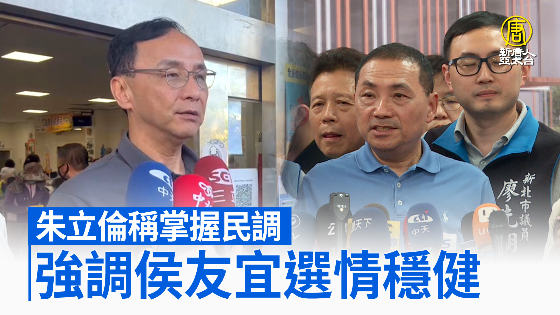 【新唐人亞太台 2023 年 06 月 01 日訊】來看到選舉話題,侯友宜在獲得國民黨徵召之後,民調卻出現下滑,甚至落後賴清德以及柯文哲。國民黨主席朱立倫今天(1日)表示,依據國民黨所掌握的民調,侯友宜選情非常穩定,強調不會受到刻意要「帶風向」的民調影響。