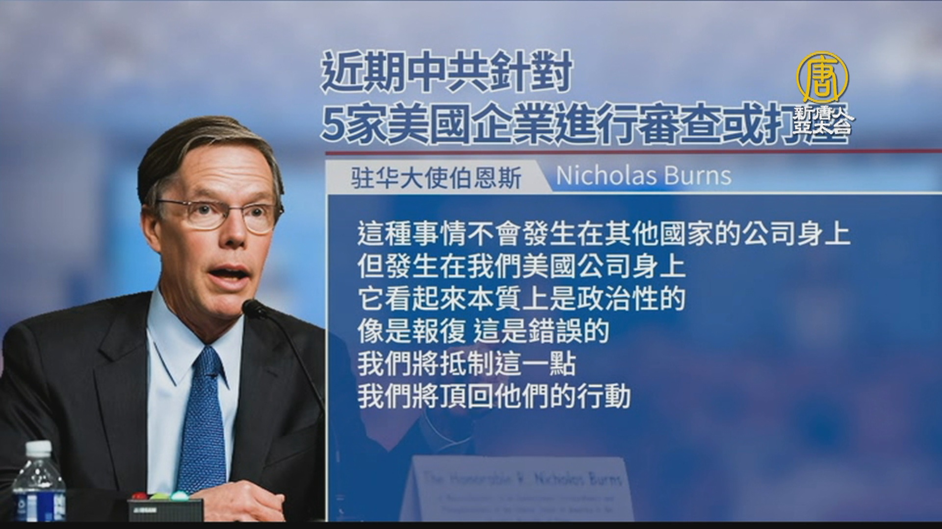【新唐人亞太台 2023 年 06 月 09 日訊】近期中共針對多家美國企業進行審查或打壓。美國駐華大使尼伯恩斯(Nicholas Burns)6月7日說,華盛頓認為中共針對美國企業是出於政治動機的不公平行為,美國將反擊中共這種做法。