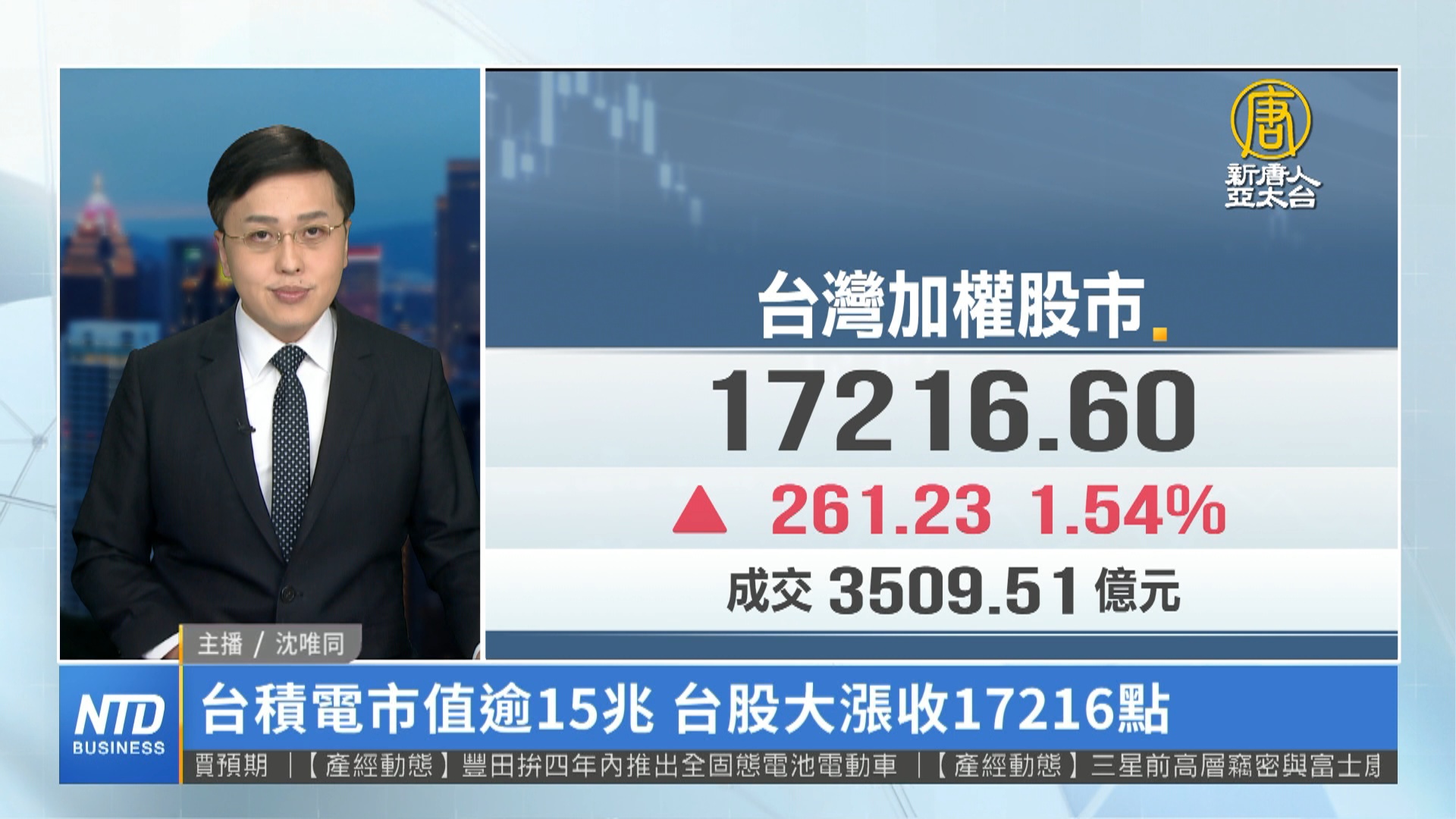台積電市值逾15兆 台股大漲收17216點