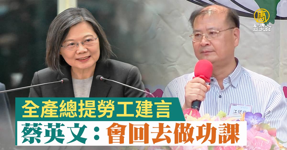 【新唐人亞太台 2023 年 06 月 14 日訊】總統蔡英文出席全國產業總工會活動,面對全產總理事長江健興提出的建言,蔡總統也回應,會回去和勞動部一起討論。
