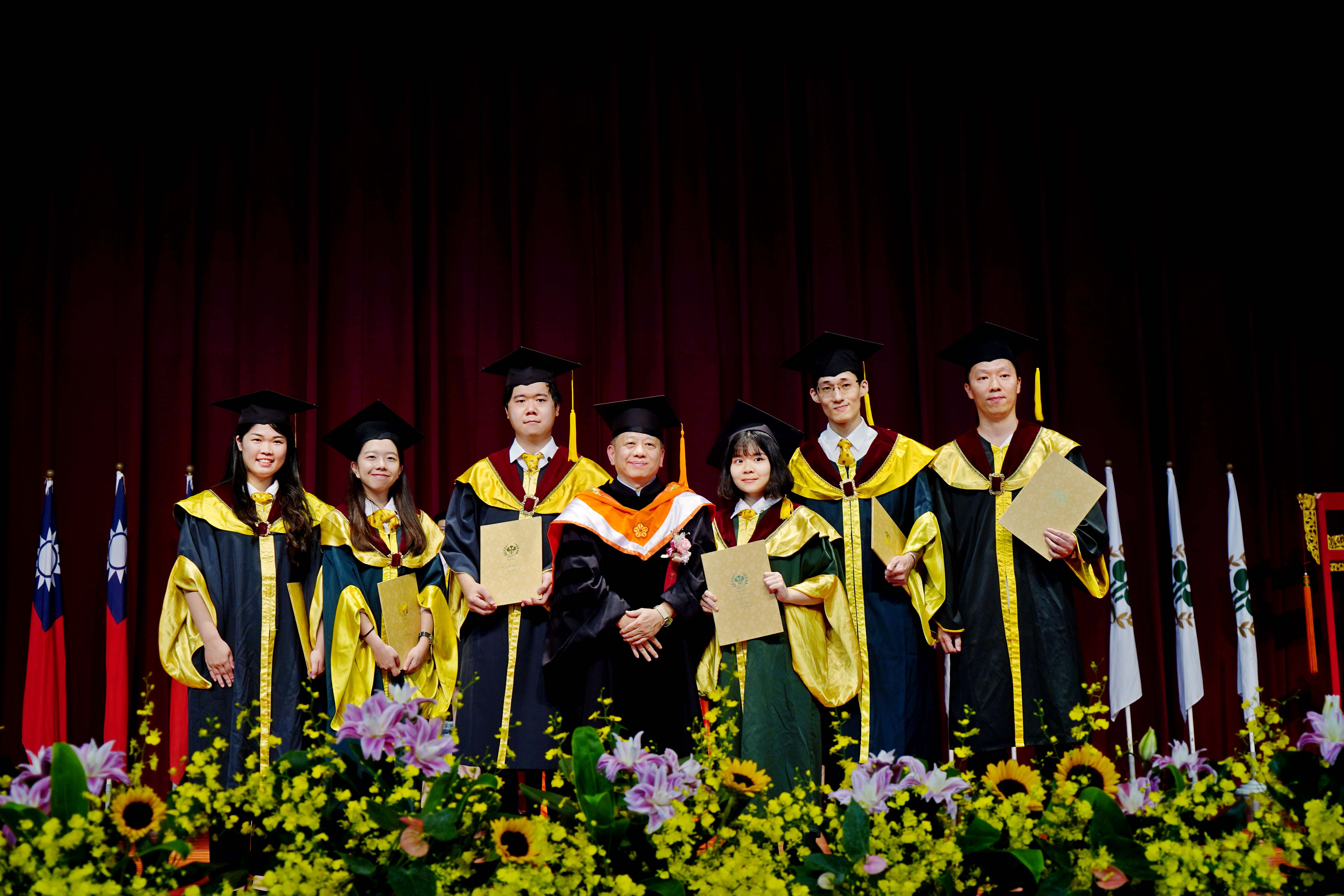 高餐大陳敦基校長與畢業生代表合影(高雄餐旅大學提供)