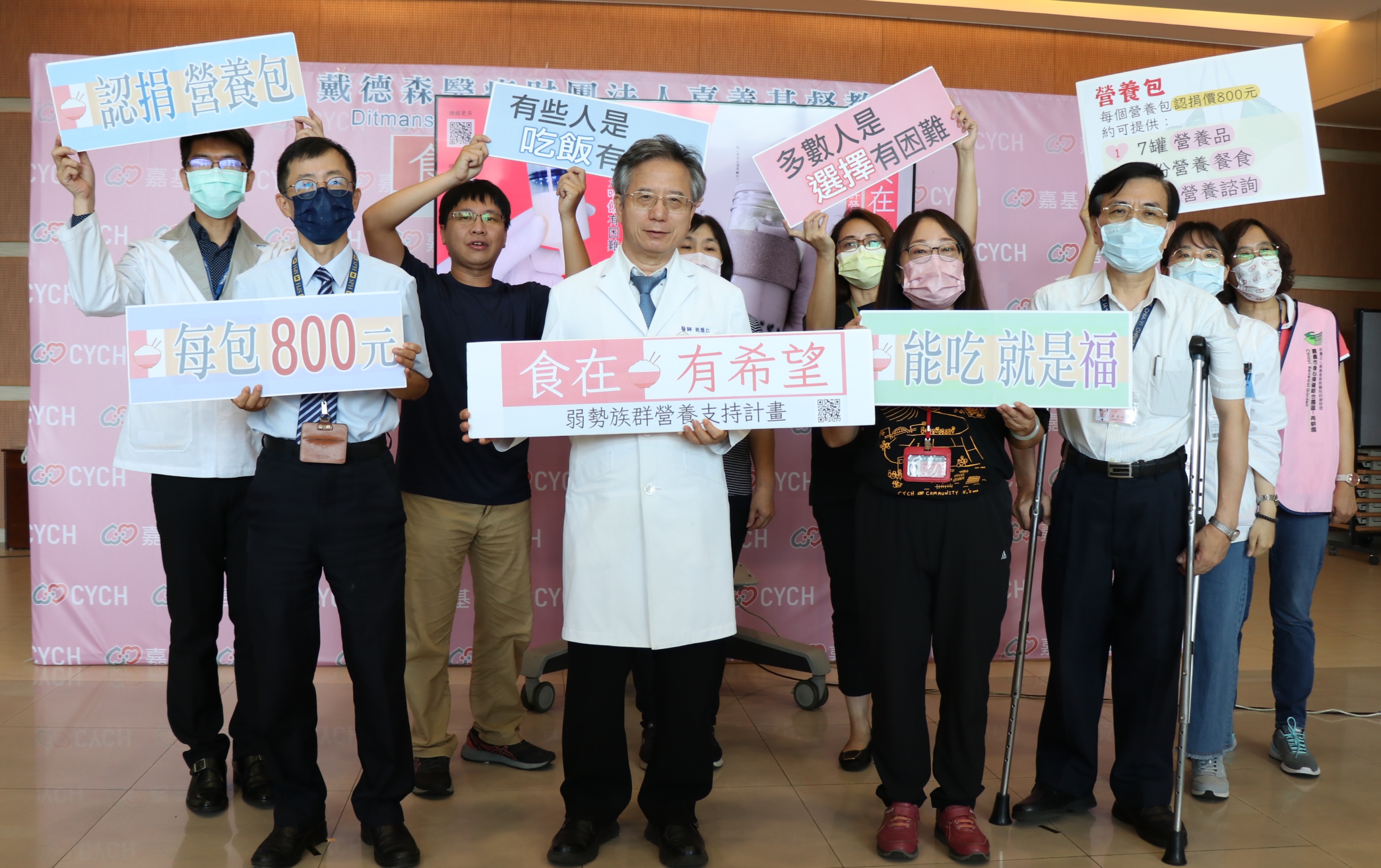 嘉基院長姚維仁表示,醫院發起「食在有希望」募款活動,讓社會大眾認捐營養包,每一份認捐價800元,可提供7罐營養品、1日餐食補助、1次營養諮詢,這一次計畫初步需9075份營養包,好的食物在了,希望就有了。醫院更預備了自身醫療、營養、復健等專業團隊,為服務對象提供長照以外的銜接服務,更歡迎社會一起跟嘉基做好事,讓醫院能提供足夠營養支援,給這些時時刻刻處在飢餓危機的弱勢族群實質的幫助,扭轉「餓」性循環。(捐款專線:(05)2765041轉8544~8546 或搜尋 嘉基愛+1)