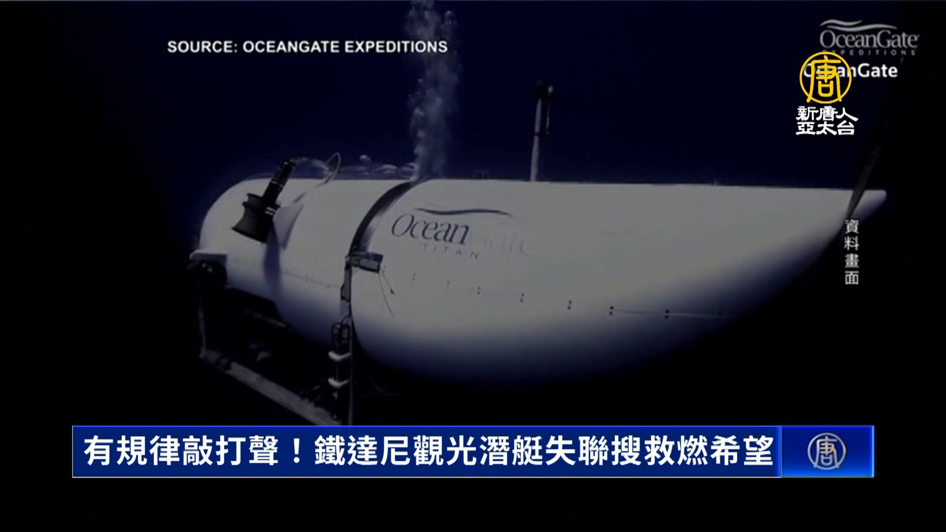 【新唐人亞太台 2023 年 06 月 21 日訊】探索「鐵達尼號」殘骸的觀光潛艇,週一(19日)失蹤後,美加兩國都投入搜救,但至今仍未尋獲,艙內可用氧氣剩不到兩天,救援工作要與時間賽跑,不過目前傳出希望,搜救團隊聽到有規律地敲響聲。