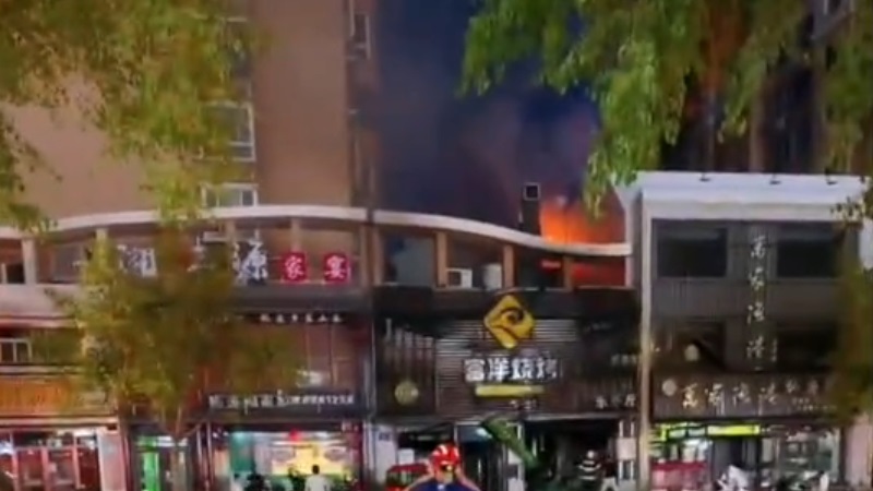 網傳的多段視頻顯示,一燒烤店冒出明火,火勢凶猛,黑煙滾滾,馬路上到處散落著玻璃碎渣,現場有摩托車倒下,一片狼藉。有受傷男子說,「突然間爆炸,我也不知道咋回事。」