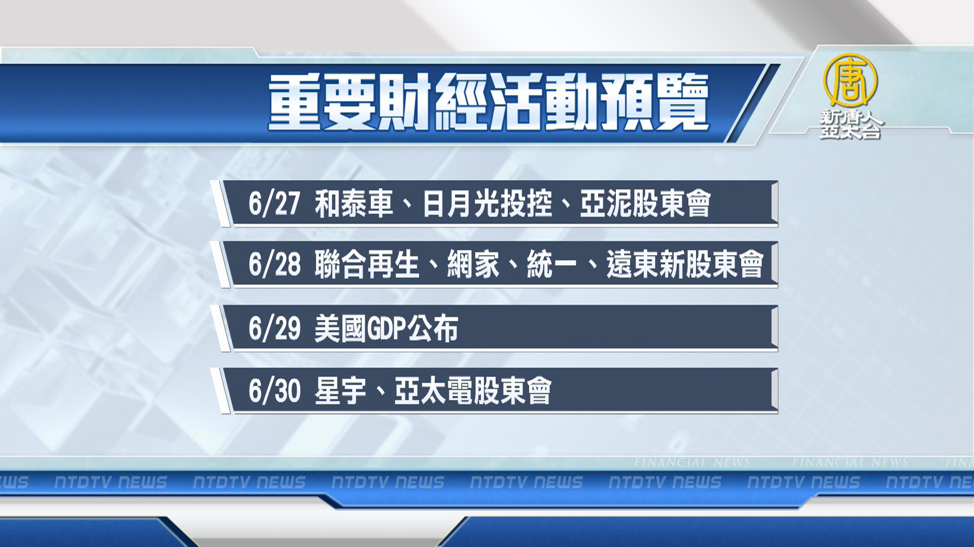 【新唐人亞太台 2023 年 06 月 24 日訊】帶您看到下週,有哪些重要的財經活動。