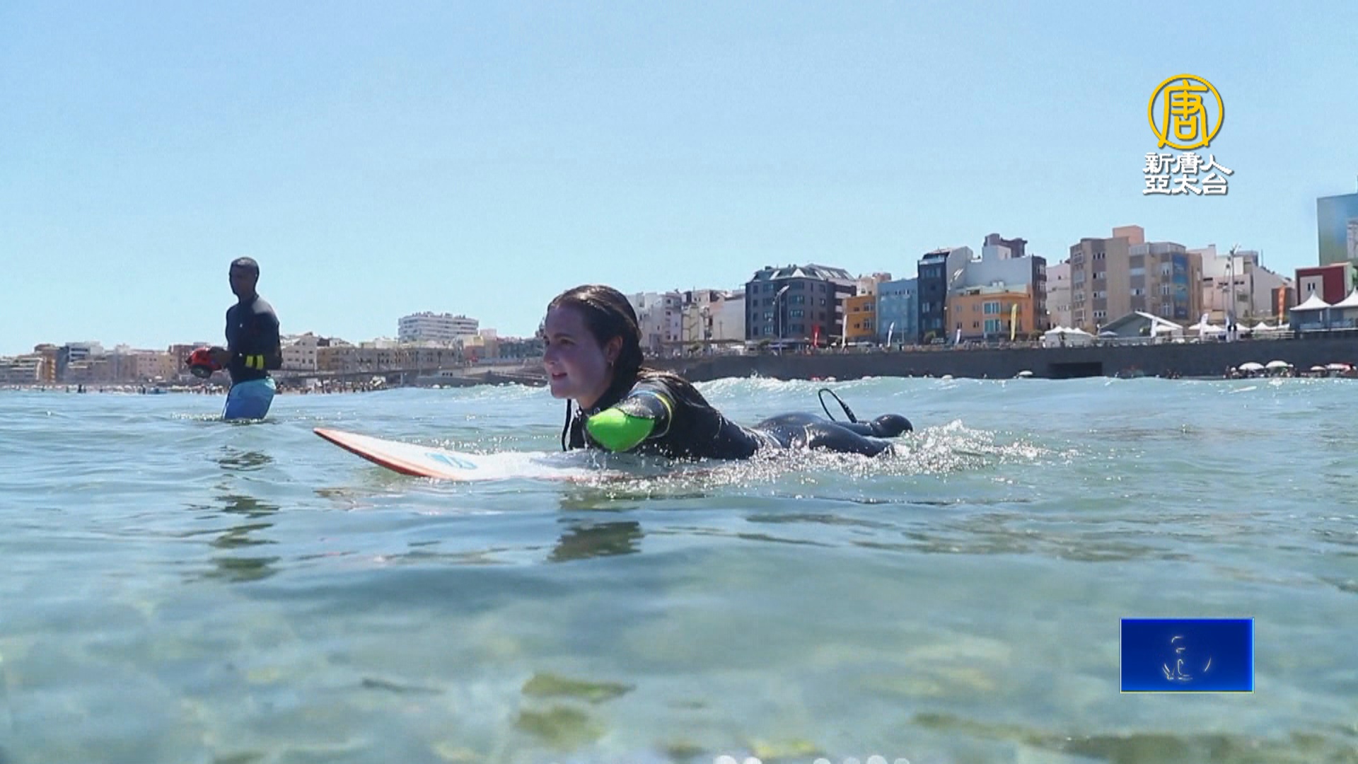 【新唐人亞太台 2023 年 06 月 28 日訊】在西班牙海灘舉行的2023年LPA衝浪城市公開賽,參賽選手裡,一名西班牙女孩「薩拉」,在18歲那年因猝發性疾病被迫四肢截肢,行動不便的她始終堅持自己最愛的衝浪,成功克服層層困難,獲得小組冠軍。