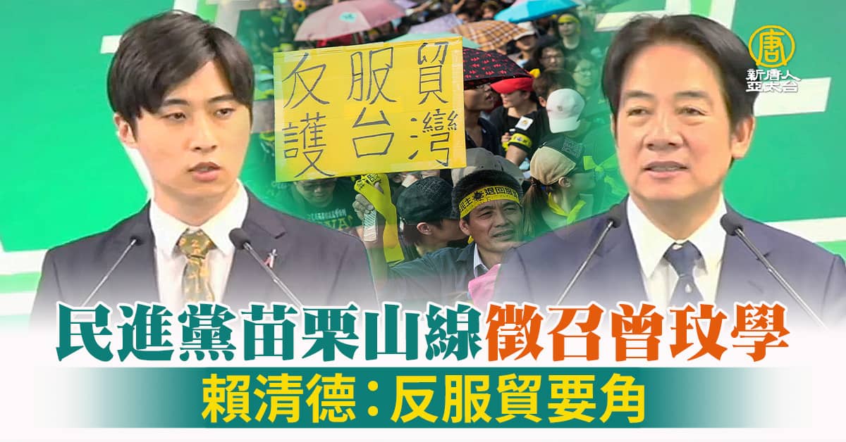 民進黨苗栗山線徵召曾玟學 賴清德:反服貿要角