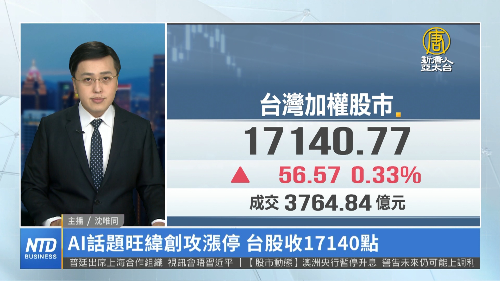 【新唐人亞太台 2023 年 07 月 04 日訊】美國股市(4)日因為獨立紀念日(Independence Day)休市一天,周一提前在下午一點收盤,在特斯拉(Tesla)等電動車股和銀行股帶動下,激勵美股四大指數,在下半年第一個交易日開出紅盤。台股週二開低走高,隨著權值股台積電上揚,加上廣達、緯創等AI概念股,快速發威,加權指數上漲56.57點,收在17140.77點,不過展望台股下半年,有分析預期台股將持續呈區間震盪,市場焦點放在獲利配息穩健公司以及AI供應鏈,今天三大法人合計賣超82億元。