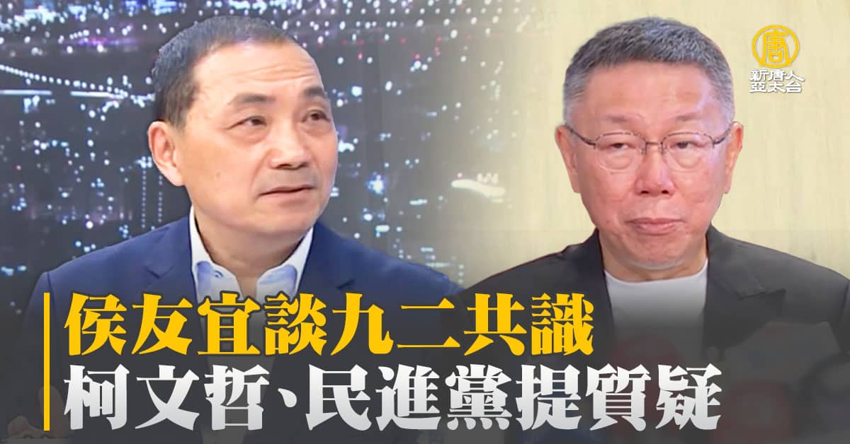 【新唐人亞太台 2023 年 07 月 04 日訊】國民黨總統參選人侯友宜首次公開談九二共識,強調原則是要符合中華民國憲法。對此,賴清德競選辦公室質疑侯友宜不管台灣主流民意,堅持走回馬英九時期的「兩岸路線」。而自認不懂九二共識的柯文哲說,聽完侯友宜的解釋之後,他更不清楚九二共識究竟是什麼。