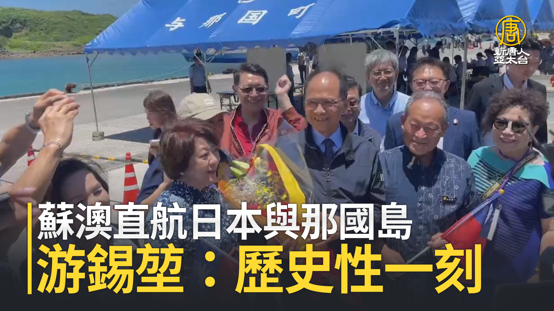 【新唐人亞太台 2023 年 07 月 04 日訊】促進台日觀光,立法院長游錫堃率團與宜蘭縣長林姿妙,以及觀光、醫療業等百人,從宜蘭蘇澳搭船直航日本最西端的與那國島,航程只需要兩個小時。游錫堃期盼能夠提振兩地的觀光產業效益,進一步促進台日友誼的穩固。