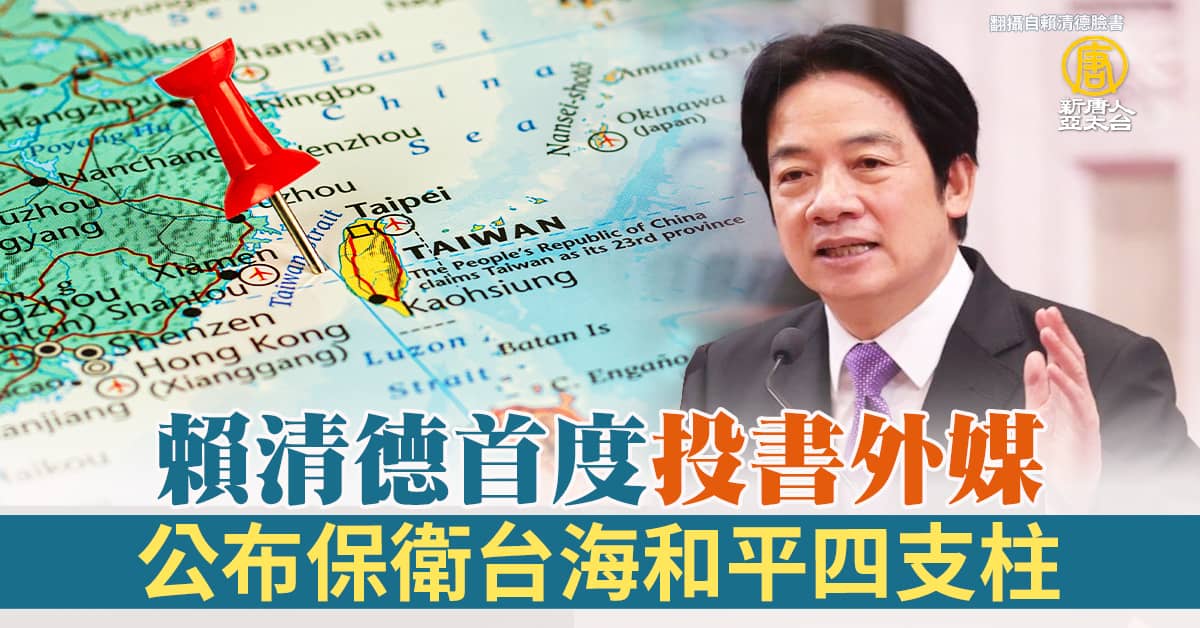 賴清德首度投書外媒 公布保衛台海和平四支柱