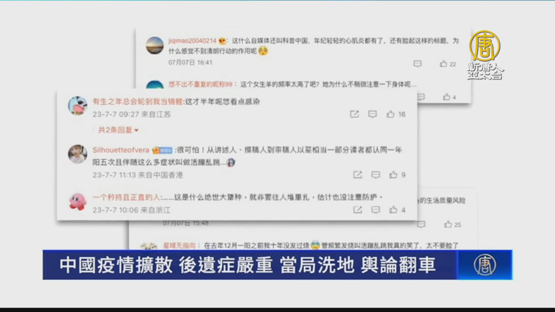 【新唐人亞太台 2023 年 07 月 08 日訊】來關心中國疫情擴散,不僅後遺症非常嚴重,死亡病例也有所上升,引發民眾關注。當局卻企圖掩蓋,導致輿論翻車。