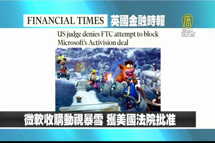 【新唐人亞太台 2023 年 07 月 12 日訊】接著是英國金融時報的報導:微軟收購動視暴雪,獲美國法院批准,法官駁回FTC禁令。