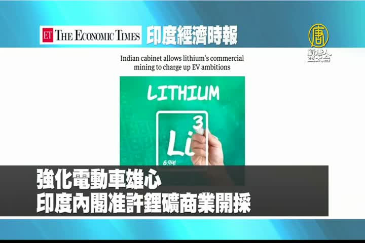 【新唐人亞太台 2023 年 07 月 13 日訊】最後是印度經濟時報報導:強化電動車雄心,印度內閣准許鋰礦商業開採。