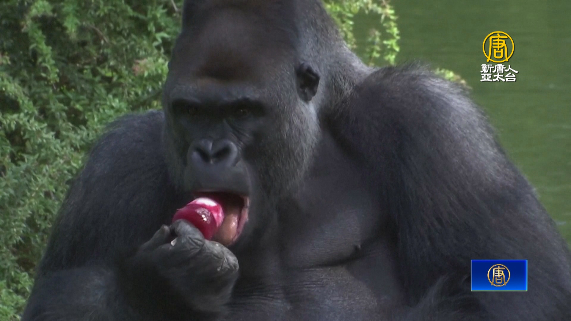 夏日高溫難擋,動物園裡的動物們也要消暑。動物園裡大猩猩,享用著飼養員精心準備的水果茶冰棒。