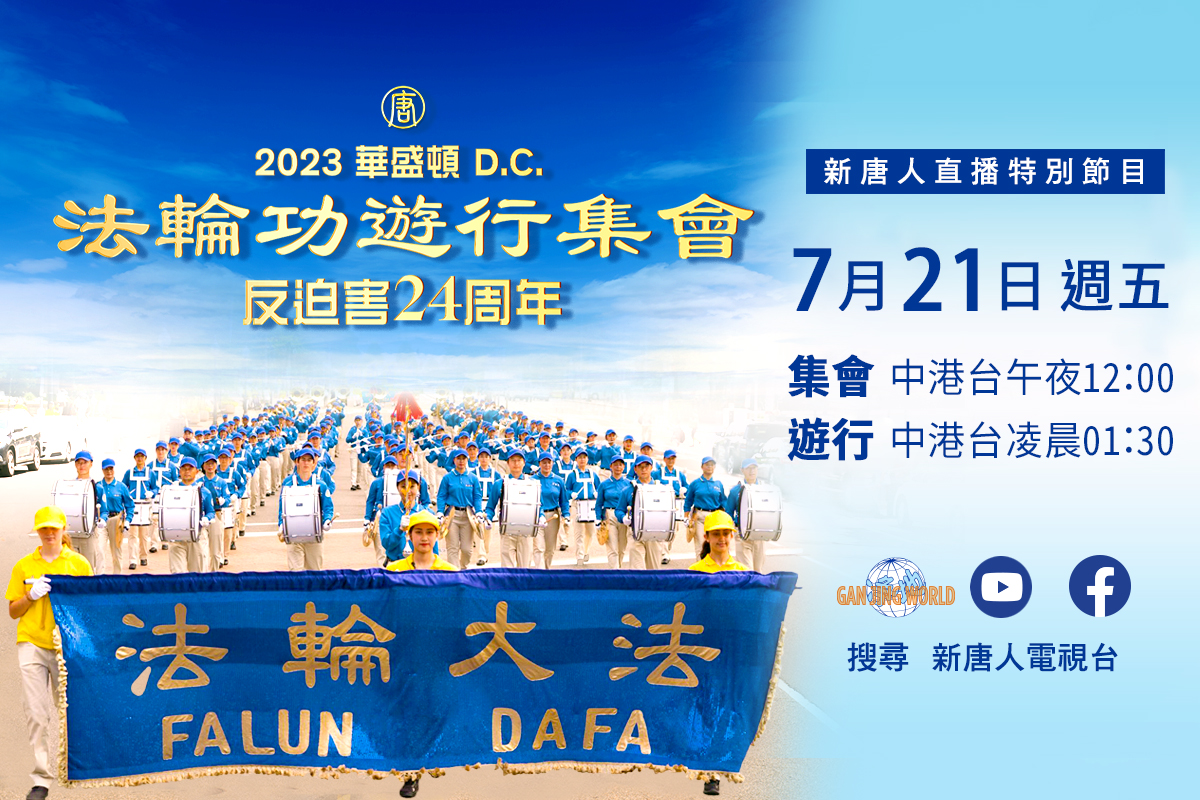 【新唐人亞太台 2023 年 07 月 14 日訊】7月20日,美國首都華盛頓DC將舉行大型遊行和集會,抗議中共過去24年來對法輪功團體的殘酷迫害,呼籲「解體中共、停止迫害法輪功」。新唐人、大紀元將進行直播。