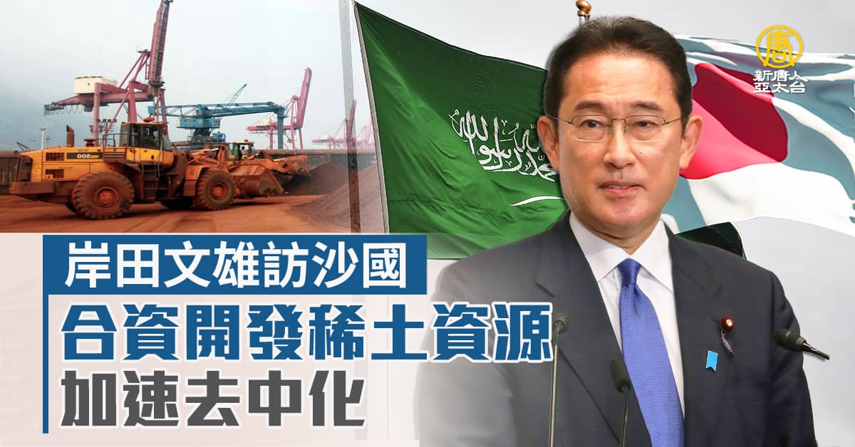 【新唐人亞太台 2023 年 07 月 15 日訊】日媒報導,日本首相岸田文雄16日起,將開啟為期三天的訪中東行程,首站將與沙烏地阿拉伯王儲薩爾曼親王 (Mohammed bin Salman) ,敲定一項兩國聯合投資開發稀土資源的協議。由於俄烏戰爭導致能源價格上漲,中共為反制西方國家,在先進半導體領域的制裁,宣布自今年8月1日起,對鎵、鍺相關物項實施出口管制。日本有近八成的氫氧化鋰供應.和超過六成的鈷加工,特別依賴中共。對此,日本正積極重整供應鏈,加速去中國化。將尋求與中東國家更多的合作。