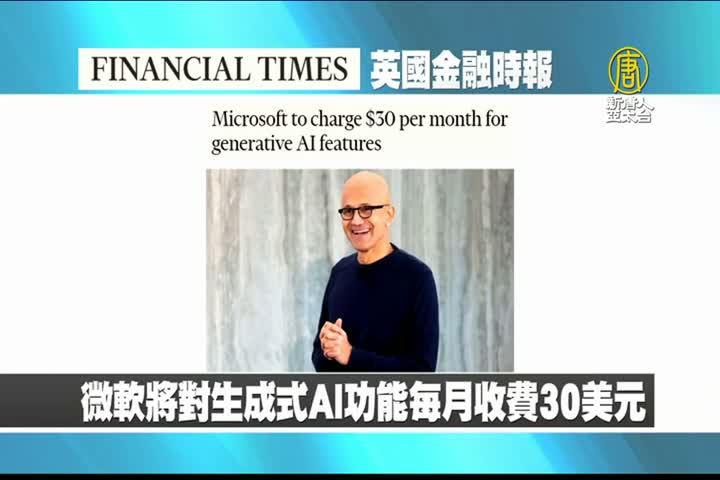 【新唐人亞太台 2023 年 07 月 19 日訊】接著是英國金融時報的報導:微軟將對生成式AI功能每月收費30美元。