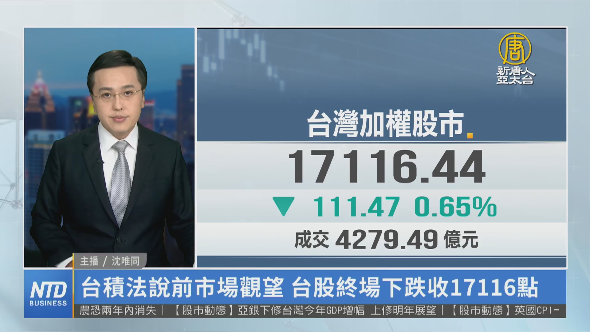 【新唐人亞太台 2023 年 07 月 19 日訊】新聞一開始帶您看到國際股市。美國股市進入超級財報週,週二四大指數全部上揚,在銀行股與AI概念股帶動下全面收紅。受美股收高激勵,台股今天(19日)開高上漲百點,一度重回17300點以上。最終,台股收盤落在17116點、跌幅0.65%。分析指出,台積電法說會將在明天(20日)舉行,相關訊息公布前,市場呈現觀望態度,特別是短線漲多的AI個股,今天都出現明顯壓力,像是仁寶、宏碁的股價,在盤中時一度跌停。因為6、7月都出現大漲走勢,讓股價基期墊的太高。