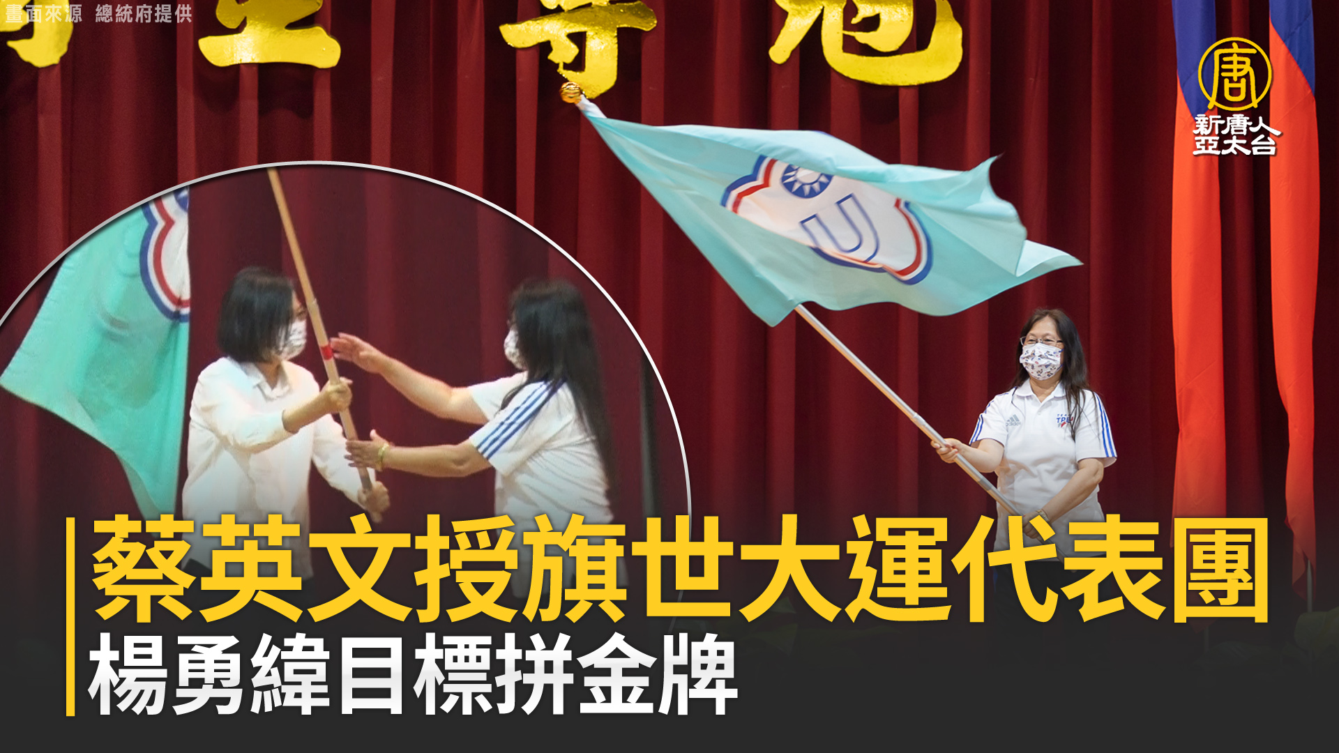 【新唐人亞太台 2023 年 07 月 21 日訊】歡迎回來。世界大學運動會,28日將在中國大陸成都開幕,總統蔡英文(21日)南下高雄,親自授旗勉勵選手。在東京奧運奪牌的柔道國手楊勇緯、跆拳道國手羅嘉翎,目標在世大運拿下金牌。