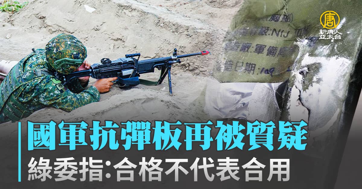 國軍抗彈板再被質疑 綠委指:合格不代表合用