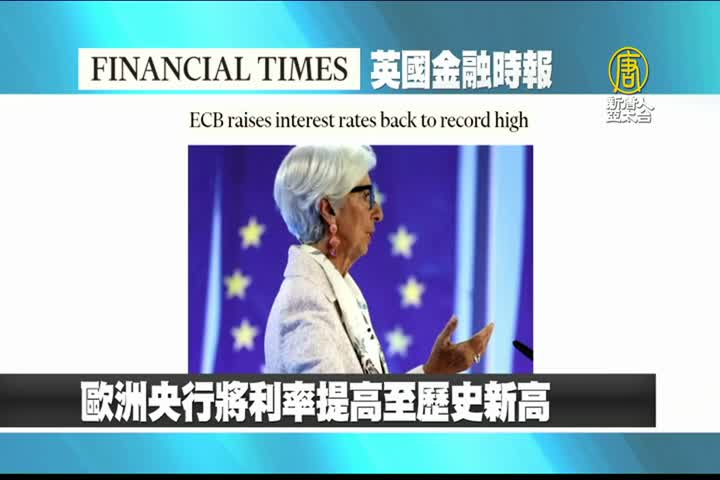 【新唐人亞太台 2023 年 07 月 28 日訊】接著是英國金融時報的報導:歐洲央行將利率提高至3.75%歷史新高,但暗示歐元區借貸成本可能已見頂。