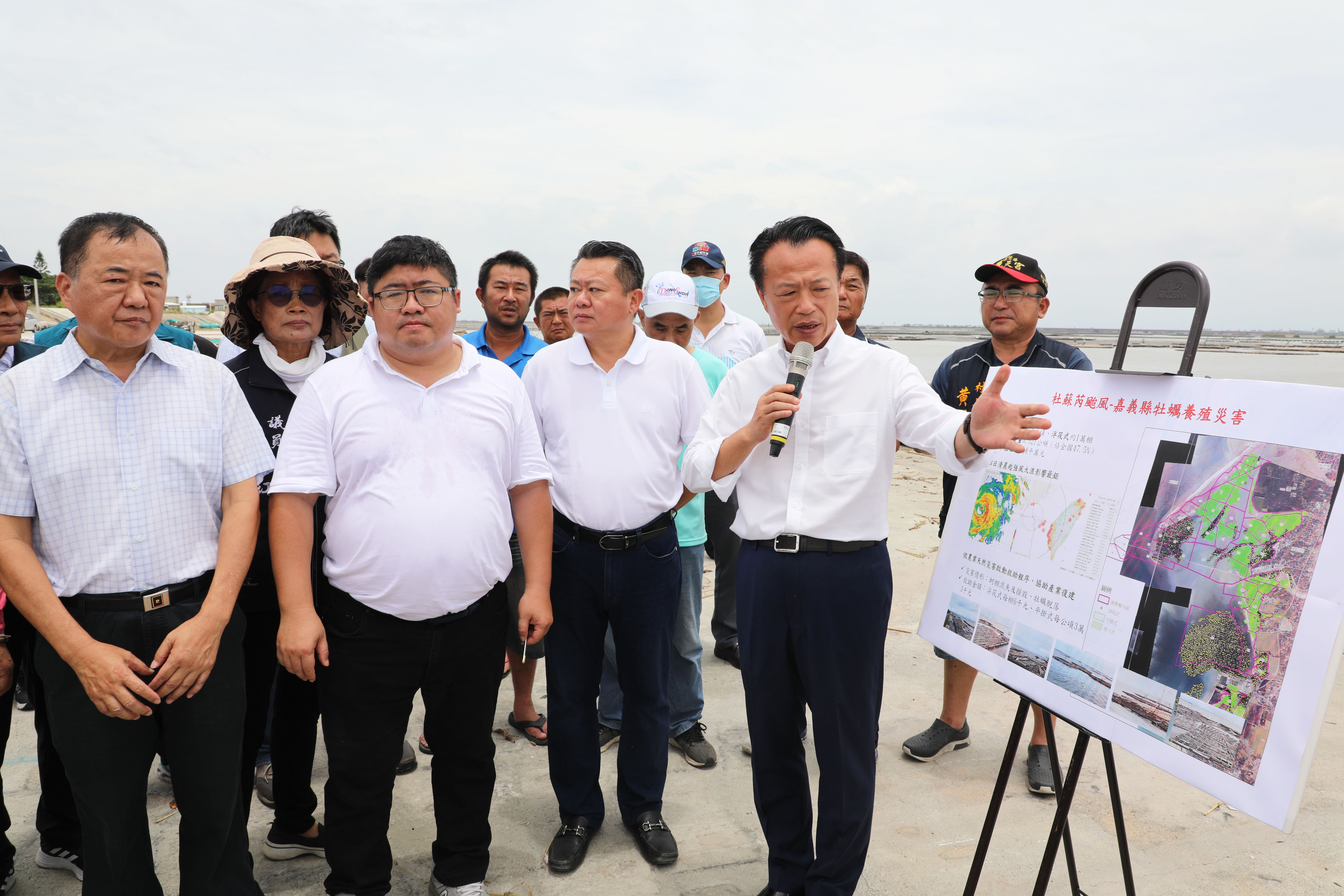 視察嘉義縣牡蠣災損 翁章梁:立即啟動救助程序(嘉義縣政府提供)