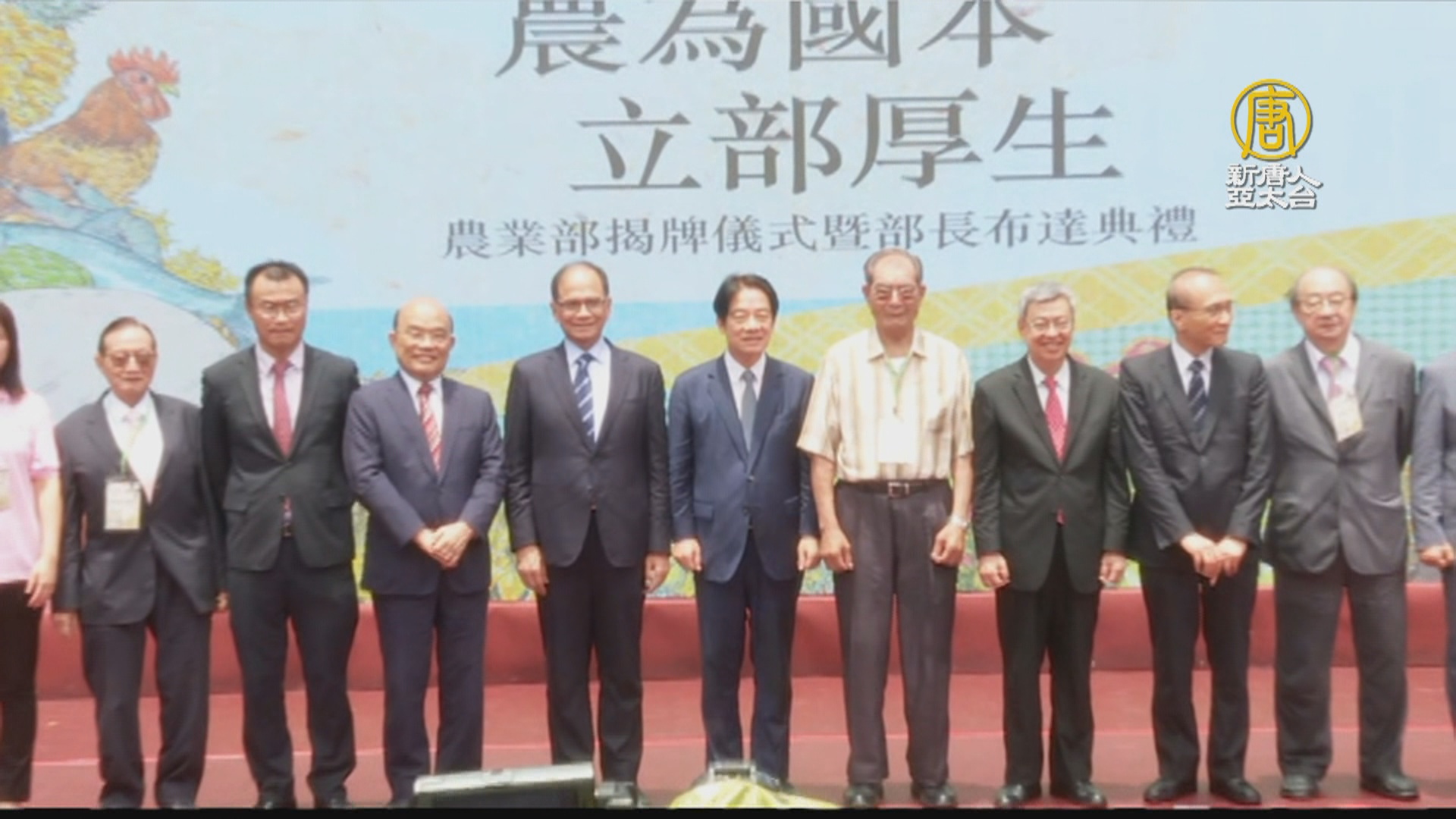 多位長官一字排開,為農業部進行揭牌。賴清德指出,農業部存在目的,在於滿足台灣人民糧食所需,必須要未雨綢繆,為未來可能的糧食危機及早做因應。