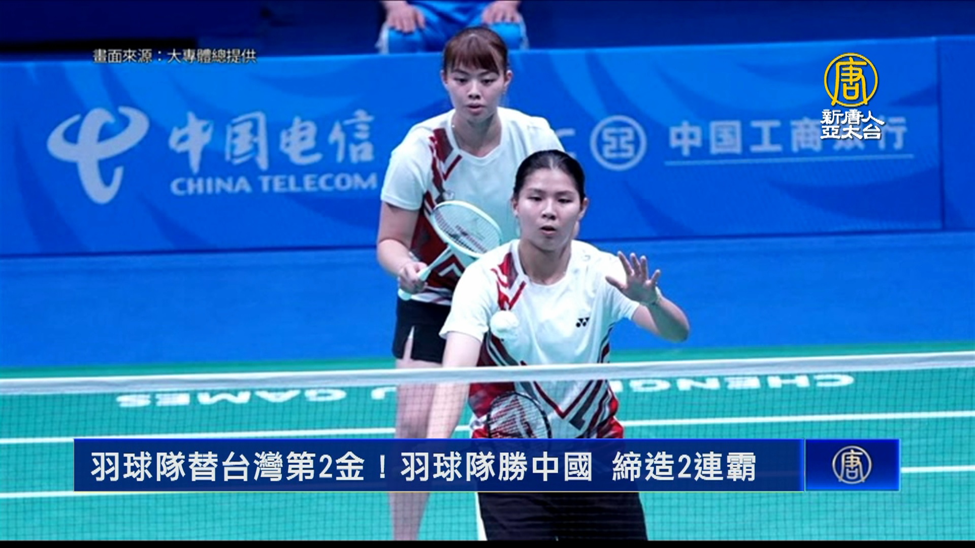 【新唐人亞太台 2023 年 08 月 03 日訊】中華隊世大運再度添金牌,中華羽球隊歷經5點、超過4小時的馬拉松大戰,最終以3:2力退地主中國隊,完成世大運混合團體賽連霸,中華隊總獎牌數來到2金9銀11銅。另外,台灣跆拳道好手徐?祐今天在世大運男子63公斤級8強戰,以2:0輕取美國選手闖進4強,至少有銅牌起跳,稍晚將爭奪金牌戰門票。