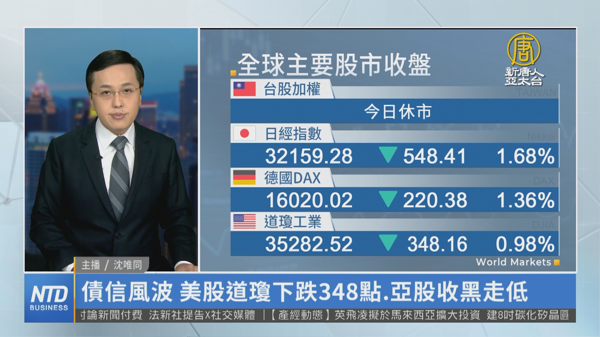 債信風波 美股道瓊下跌348點.亞股收黑走低