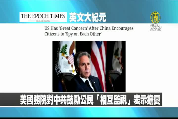 【新唐人亞太台 2023 年 08 月 04 日訊】首先來看到美國大紀元英文版報導:美國國務院對中共鼓勵公民相互監視表示擔憂,並擔心此舉可能危及在地美國公民或商人的安全。