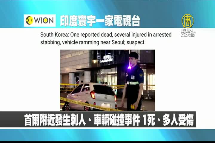 【新唐人亞太台 2023 年 08 月 04 日訊】最後是印度寰宇一家電視台報導:韓國首爾附近發生刺人、車輛碰撞事件,造成一人死亡、多人受傷,嫌疑人被捕。