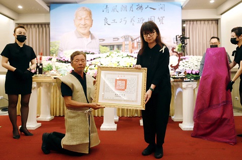 【新唐人亞太台 2023 年 08 月 07 日訊】重要文化資產保存技術「土水修造技術」保存者蘇清良7月20日辭世,享壽89歲。文化部政務次長李靜慧6日出席告別式,並代表頒贈總統褒揚令,由蘇清良兒子蘇神男代表受贈。