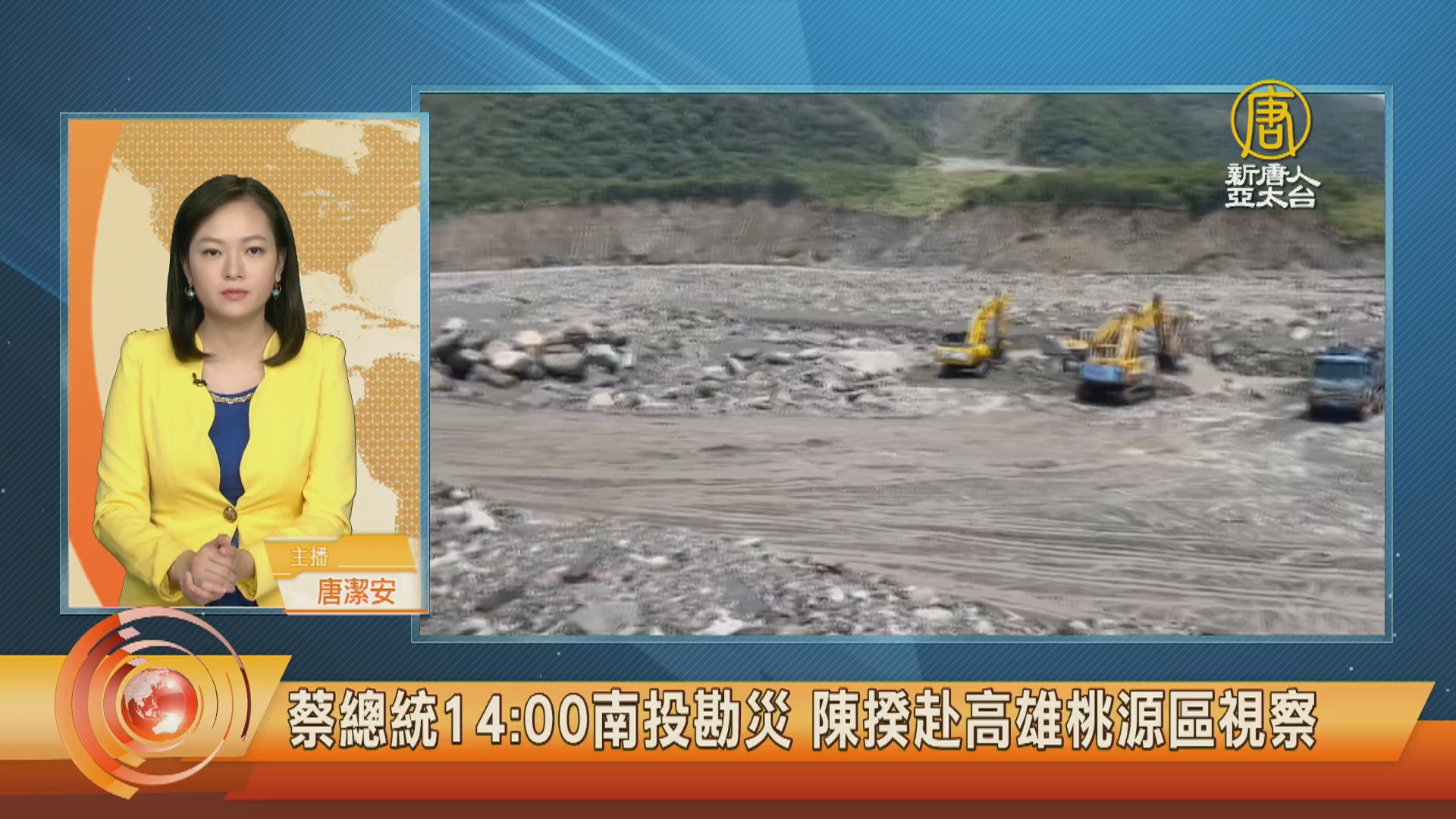 【新唐人亞太台 2023 年 08 月 07 日訊】總統蔡英文今天下午兩點,將與行政院副院長鄭文燦赴南投勘災。另外,行政院長陳建仁今天下午兩點將赴高雄桃源區視察明霸克露橋受災情況與救災進度。