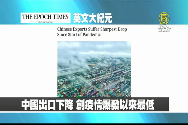 【新唐人亞太台 2023 年 08 月 09 日訊】首先來看到美國大紀元英文版報導:中國出口下降,創疫情爆發以來最低。