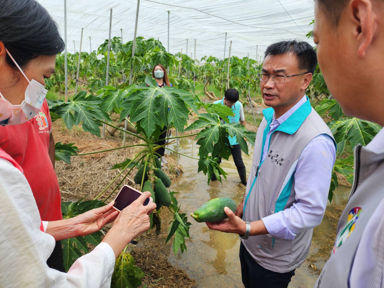 農業部陳吉仲部長視察南投縣埔里鎮木瓜災損情形(農糧署提供)
