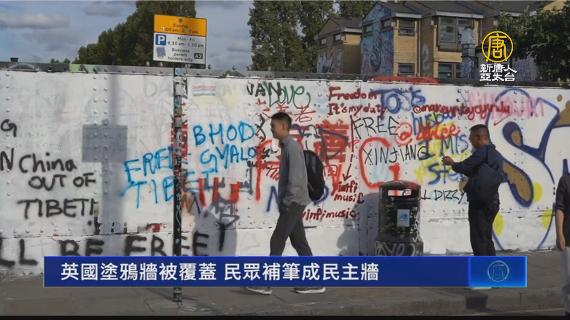 塗鴉牆大戰直擊!旅英中國人反擊中共標語