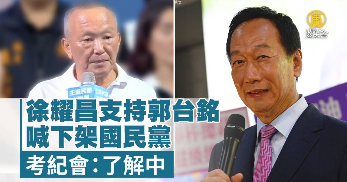 【新唐人亞太台 2023 年 08 月 11 日訊】繼續關心,2024總統大選話題,鴻海創辦人郭台銘昨天晚間在苗栗舉辦造勢晚會。苗栗縣長鍾東錦與前縣長徐耀昌出席站台,在台上,徐耀昌脫口喊出,要下架國民黨。對此,國民黨考紀會主委表示,正在了解當中。