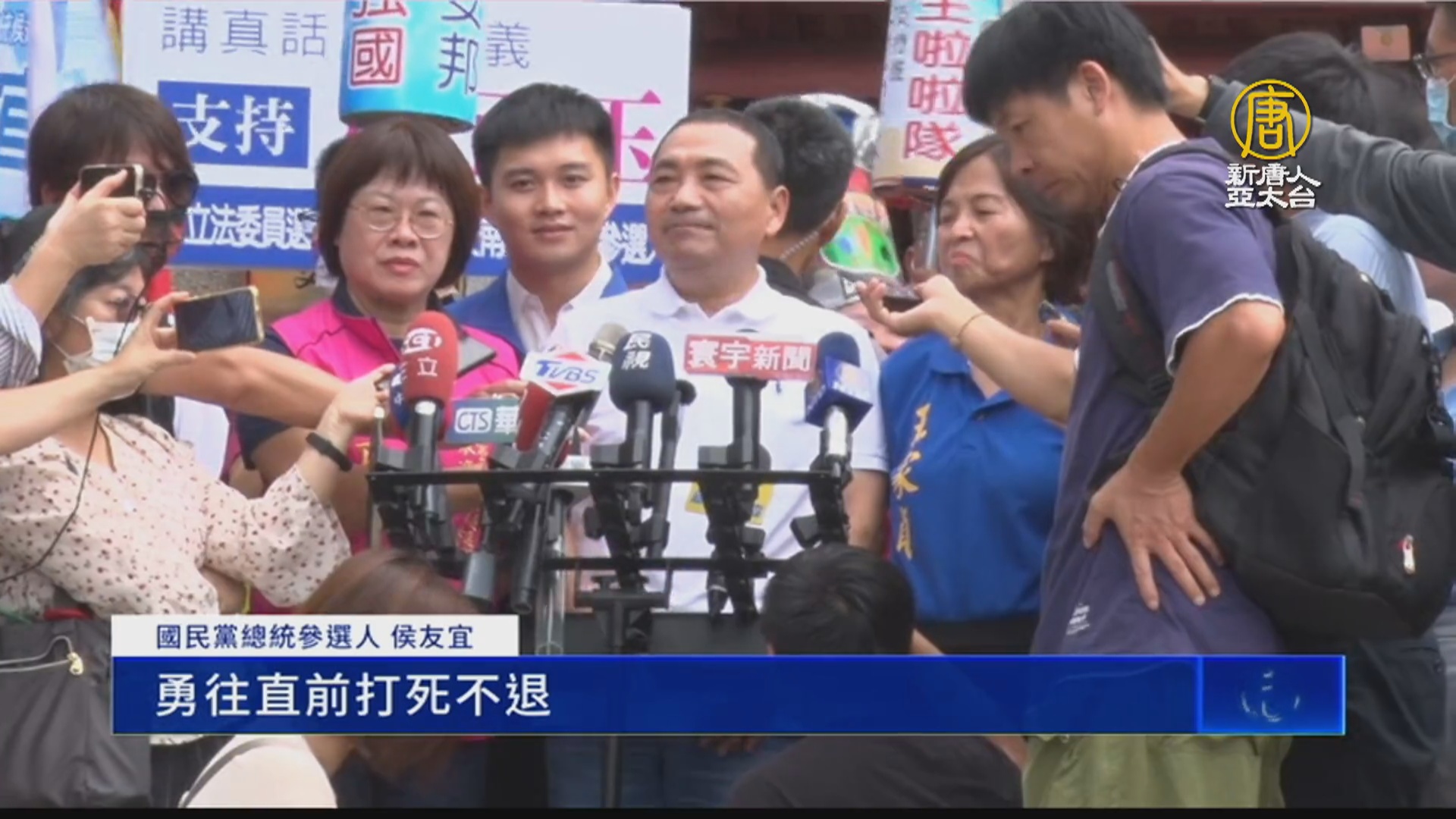 【新唐人亞太台 2023 年 08 月 12 日訊】2024大選話題來看到,國民黨總統參選人侯友宜今天(12日)在台南競選行程滿檔。參拜地方信仰中心廟宇,與民眾黨主席柯文哲「王不見王」。而對於柯文哲表態參選到底,侯友宜強調,會贏得最後勝選,「打死不退」。