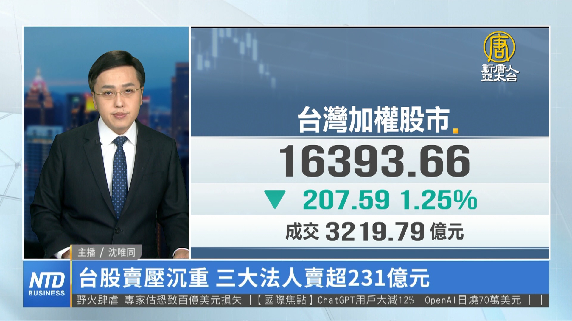 【新唐人亞太台 2023 年 08 月 14 日訊】新聞一開始帶您關心金融市場,中國房地產傳出多項爆雷危機,加上美債殖利率走高,美股持續修正,台股今 (14) 日賣壓沉重,加權指數開低走低,大跌 207.59,收在16393.66點,一舉回測半年線支撐,下探兩個半月低點,觀察三大法人今天動向,外資賣超191億元,自營商也賣出百億,僅有投信持續買進。
