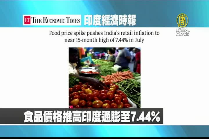 【新唐人亞太台 2023 年 08 月 15 日訊】最後是印度經濟時報報導:食品價格飆升,推高印度通膨至7.44%,寫下15個月高點。
