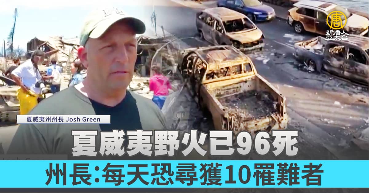 自8月8日起在夏威夷度假勝地毛伊島持續燃燒的野火,截至美東14日下午4點,至今已造成至少96人死亡,此外還有至少1,000人失蹤,經濟損失估計達60億美元。